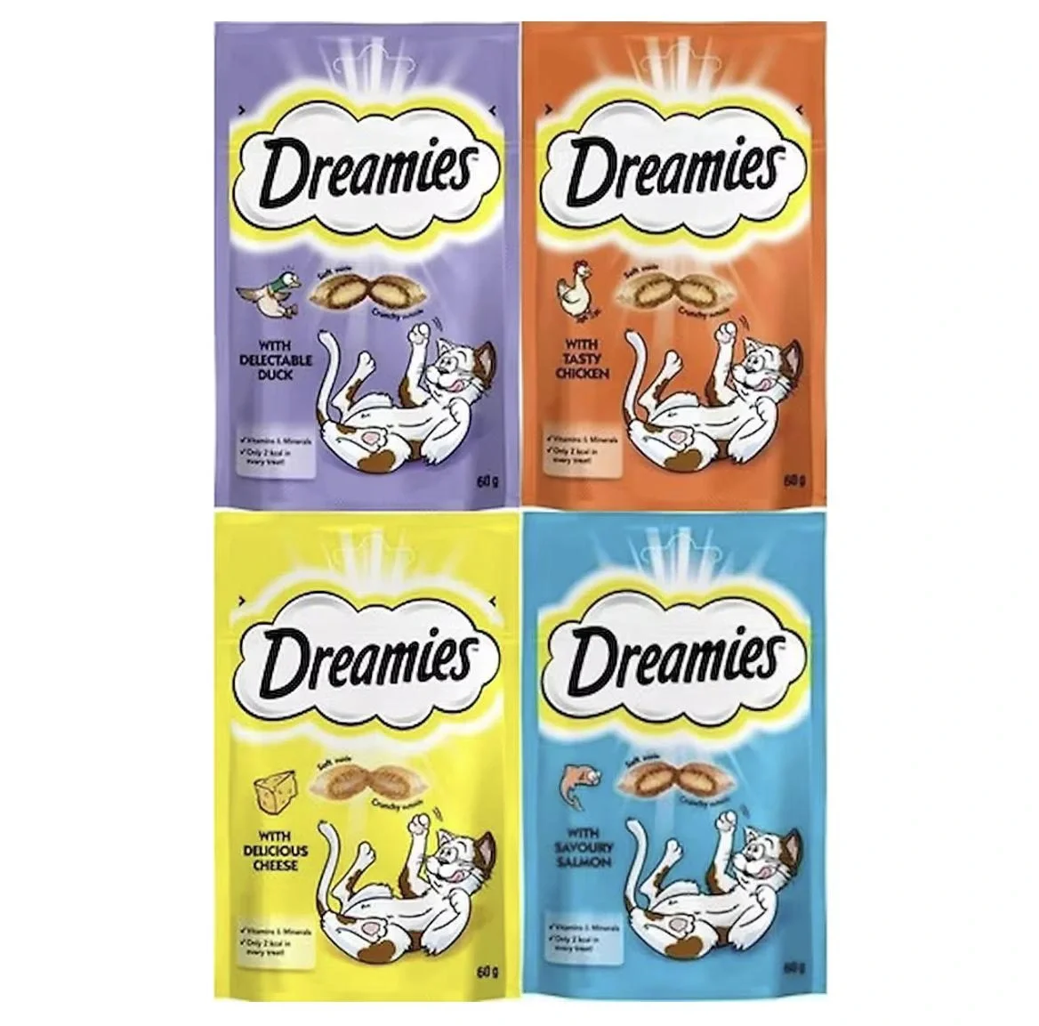 Dreamies Karışık Maması 60 gr, kedinizin severek yiyeceği lezzetli ve besleyici bir atıştırmalıktır. Karışık lezzetler sayesinde kedinizin damak tadına hitap ederken, vitamin ve mineraller ile genel sağlığı destekler. Eğitim sırasında ödül olarak veya günün herhangi bir anında küçük bir mutluluk vermek için idealdir. Dışarıda çıtır, içeride yumuşak yapısıyla kedinize keyifli bir lezzet deneyimi sunar. Pratik 60 gr paket boyutu sayesinde kolayca saklanabilir ve kullanılabilir.