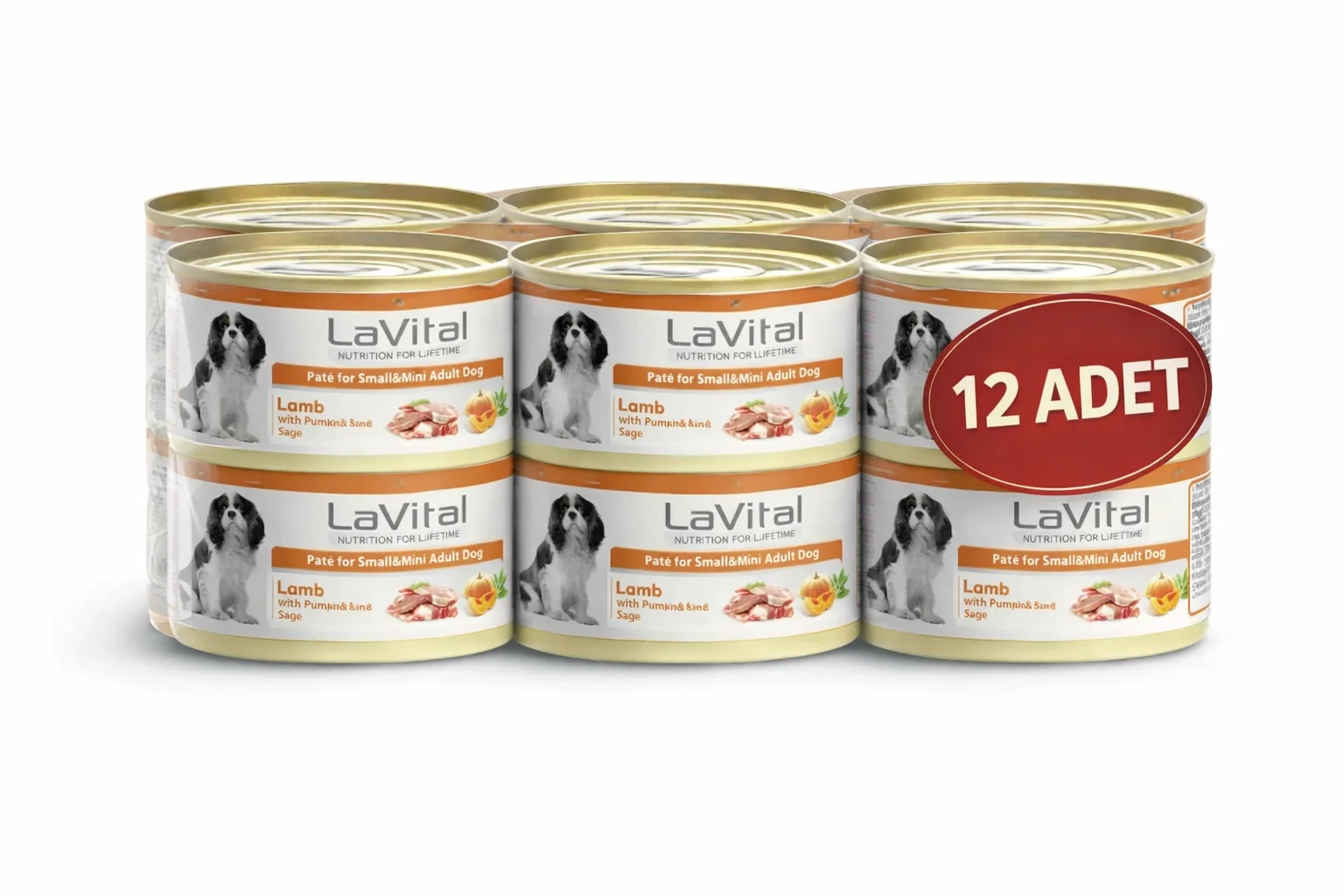 Lavital Kuzu Etli, Balkabaklı ve Adaçaylı Mini Irk Yetişkin Köpek Konservesi 85GR x 12 ADET