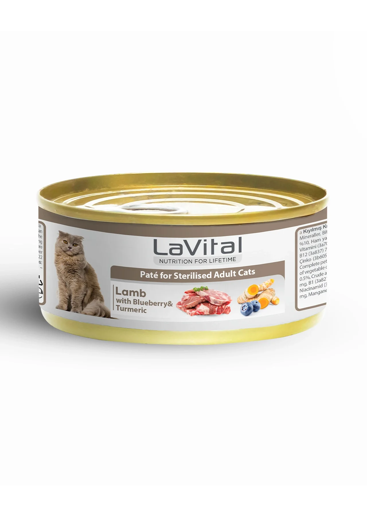 Lavital Kuzu Etli, Yabanmersini ve Zerdeçallı Sterilised Yetişkin Kedi Konservesi 85GR