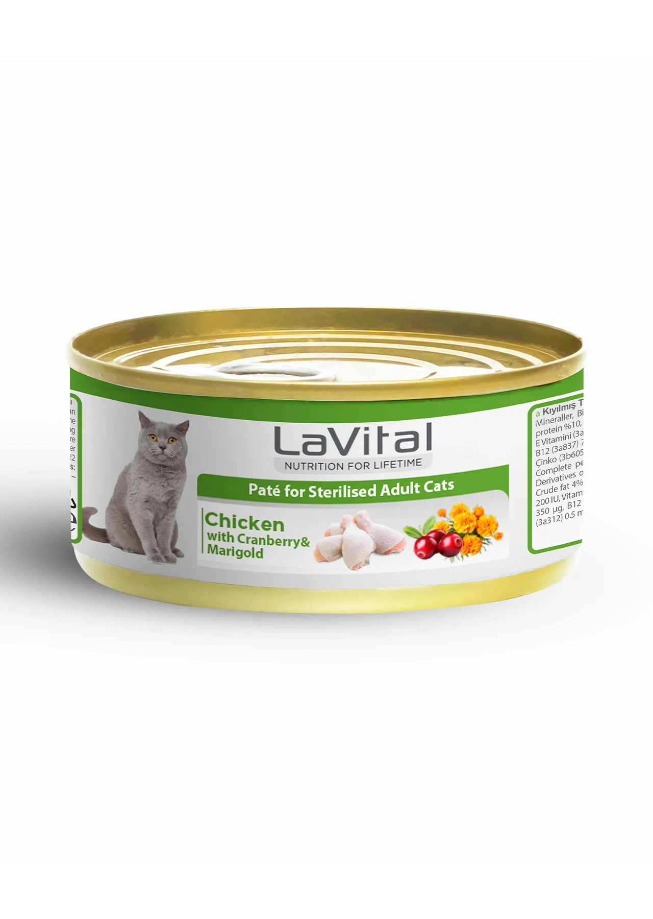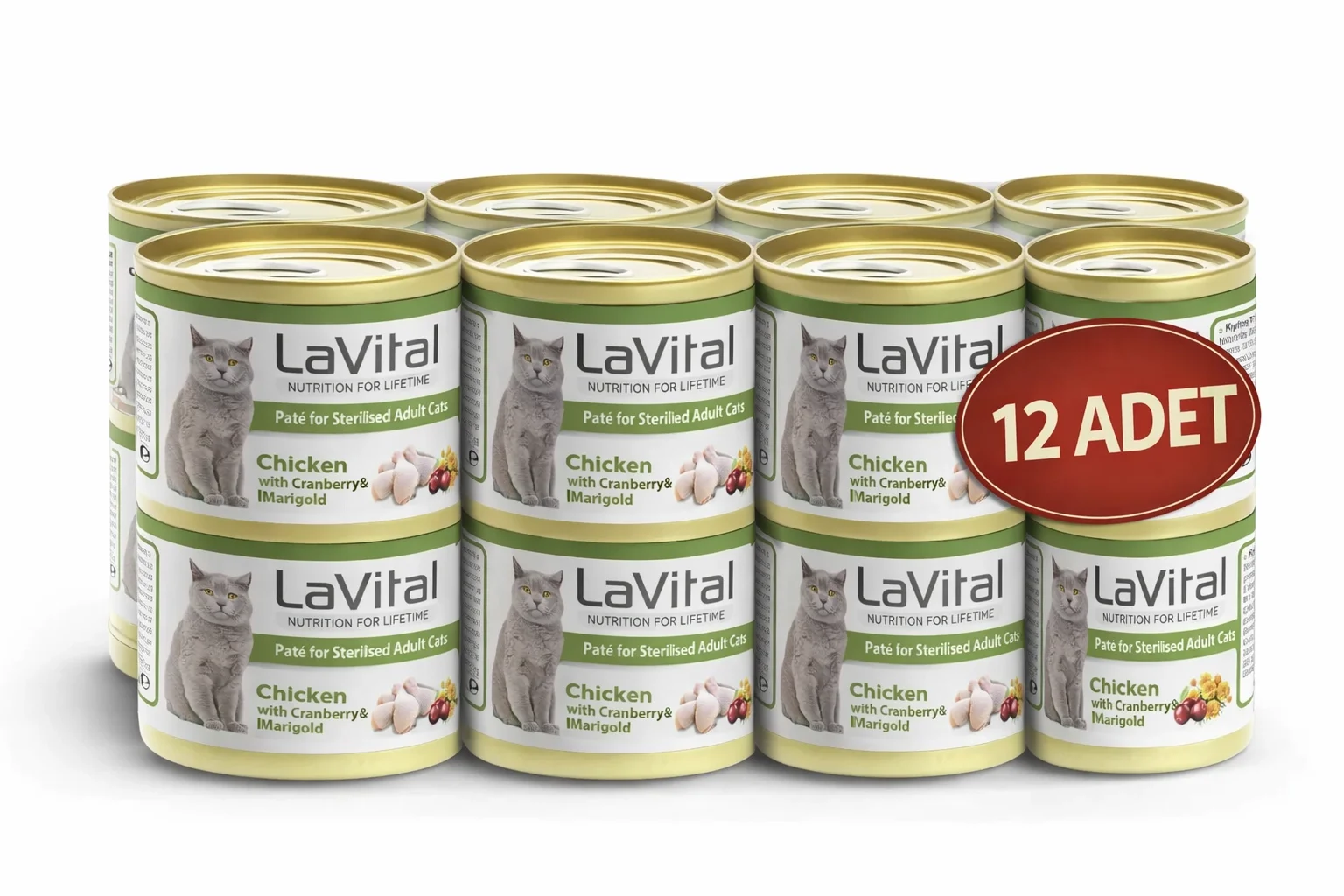 Lavital Tavuklu Kızılcık ve Kadife Çiçekli Sterilised Yetişkin Kedi Konservesi 85GR X 12 ADET