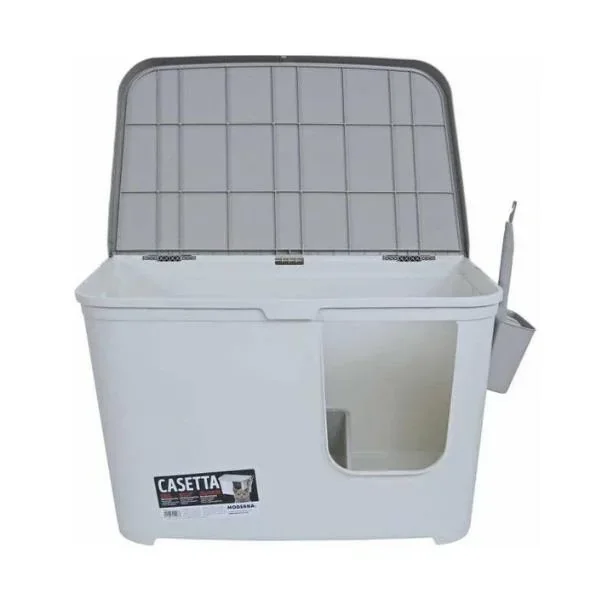 Moderna Casetta Kapalı Kedi Tuvaleti - Gri Beyaz 75.7 x 45 x 45 cm, kedinizin tuvalet ihtiyacını konforlu, hijyenik ve kokusuz bir şekilde karşılaması için özel olarak tasarlanmıştır. Geniş iç hacmi sayesinde orta ve büyük ırk kediler için ideal bir kullanım sunar.